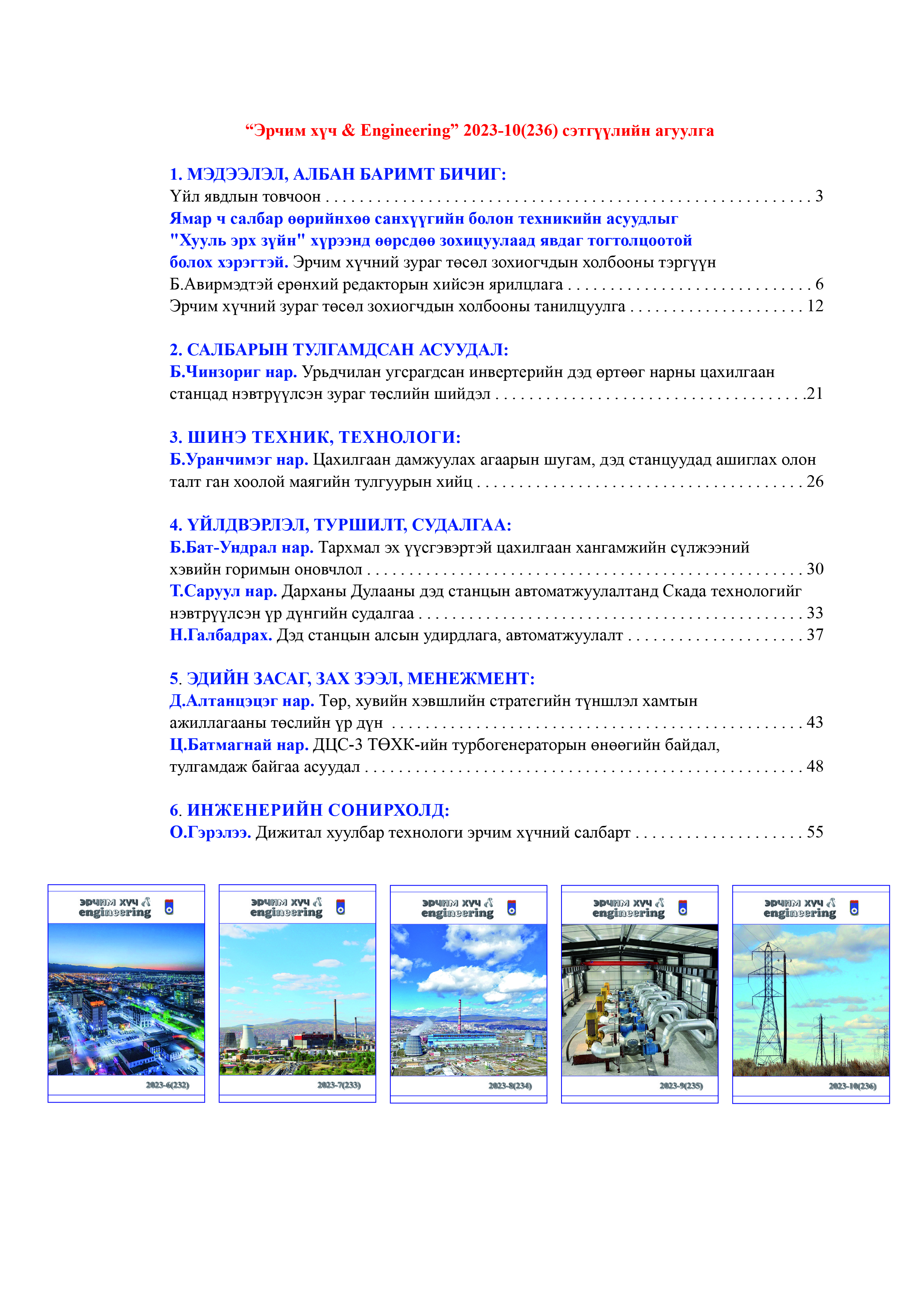 “Эрчим хүч & Engineering” 2023-10(236) сэтгүүлийн агуулга